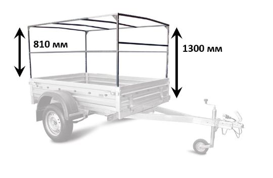 Внутренняя высота от пола платформы прицепов с высоким бортом (10.024, 10.026, 10.034) — 1300 мм