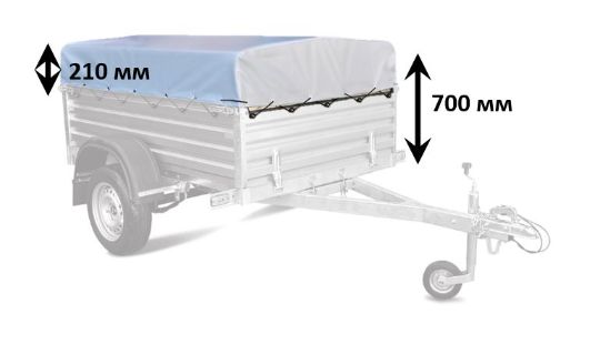 Внутренняя высота от пола платформы прицепов с высоким бортом (10.024, 10.026, 10.034) — 700 мм